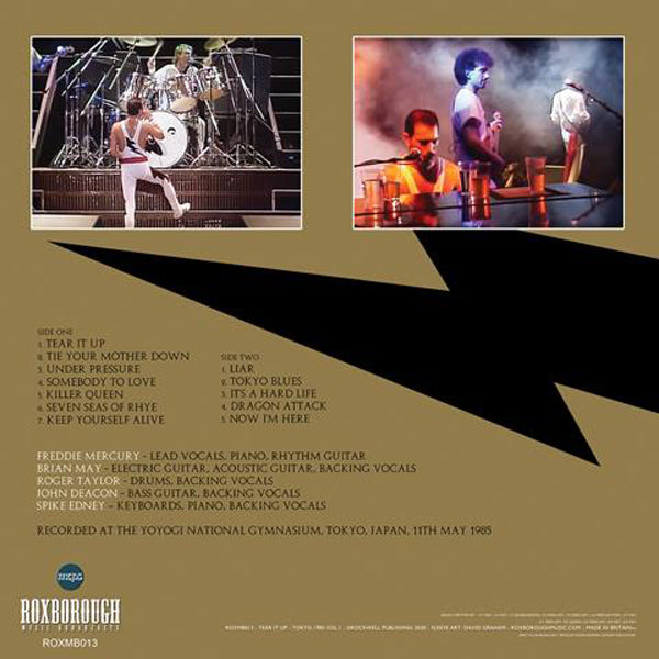 Side One: 1. Tear It Up - 2. Tie Your Mother Down - 3. Under Pressure - 4. Somebody To Love - 5. Killer Queen - 6. Seven Seas Of Rhye - 7. keep yourself alive